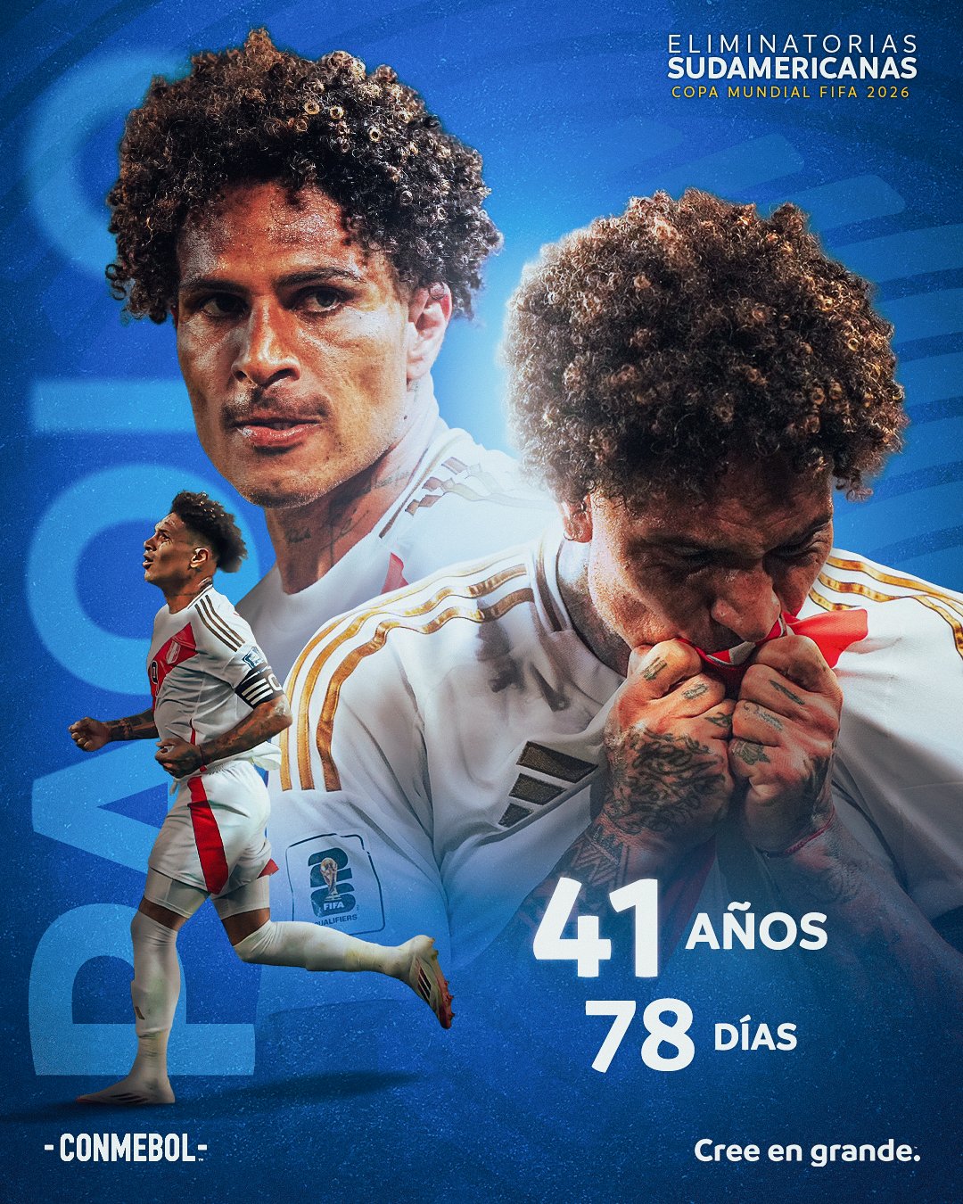 第45分鐘,保羅-格雷羅得球后轉(zhuǎn)身低射破門。格雷羅成為南美世預(yù)賽最年長(zhǎng)進(jìn)球球員(41歲78天),此前紀(jì)錄由秘魯球員德?tīng)柤佣啵‵austino Delgado)保持,他在1961年對(duì)陣哥倫比亞比賽中進(jìn)球(40歲81天)。