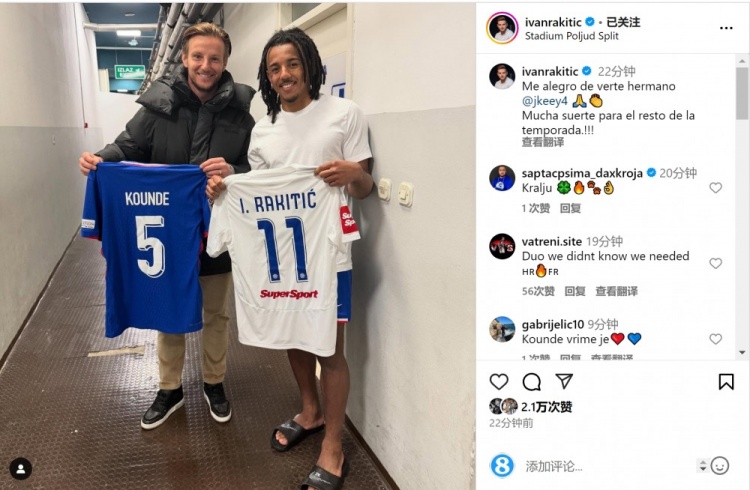 3月21日訊 歐國聯(lián)1/4決賽首回合比賽,法國客場0-2不敵克羅地亞。目前效力于哈伊杜克的拉基蒂奇社媒曬出與孔德互換球衣的照片,配文:“很高興見到你,我的兄弟孔德,祝你在本賽季余下的比賽中好運!” 本文標簽: 足球 西甲 巴塞羅那 法國 克羅地亞