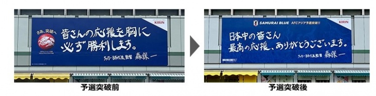 據(jù)日本足協(xié)報道,在日均人流量達300萬的日本新宿地鐵站南面出口的一處看板上,在世預(yù)賽前后都換上了森保一親筆寫下的感謝語。據(jù)悉,自3月16日到鎖定世界杯參賽資格前,看板內(nèi)容為:“我們會將大家的聲援銘記在心,與巴林一戰(zhàn)我們一定會取勝?!?/p>