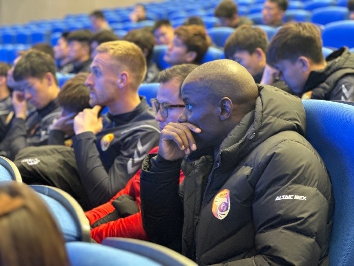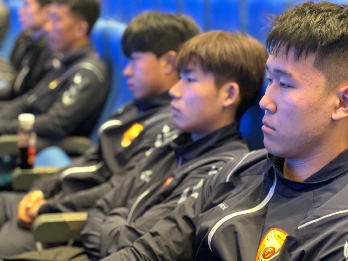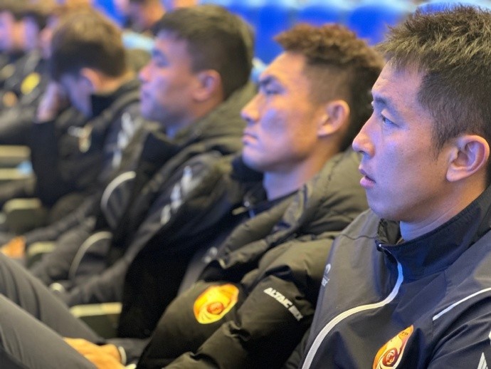 最后,現(xiàn)役中甲聯(lián)賽裁判監(jiān)督尹航進(jìn)行了職業(yè)聯(lián)賽判罰統(tǒng)一尺度宣講。他的宣講以文字結(jié)合過往實戰(zhàn)視頻案例的形式展現(xiàn),給隊員們留下了深刻印象。