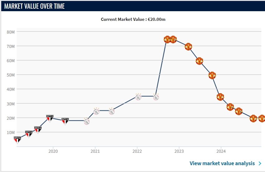 本賽季25歲的安東尼自曼聯(lián)租借至皇家貝蒂斯后狀態(tài)火熱,為皇家貝蒂斯出場(chǎng)11場(chǎng)已打入4球,并有4次助攻,且多為關(guān)鍵進(jìn)球,幫助皇家貝蒂斯近期斬獲西甲五連勝。可他的身價(jià)卻與去年12月份相同,仍為2000萬(wàn)歐元。