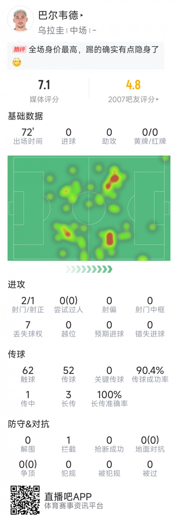 3月22日訊 在本輪南美區(qū)世預賽,烏拉圭0-1不敵阿根廷。巴爾韋德首發(fā)出場被提前換下,以下為他在本場數據:比賽時間72分鐘2次射門1次射正62次觸球傳球成功率90.4%1次攔截全場0對抗0搶斷0解圍評分7.1分 本文標簽: 足球 皇家馬德里 西甲 國家隊 烏拉圭
