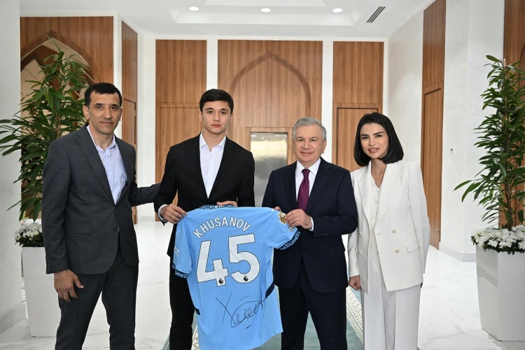 3月22日訊 國際比賽日期間,胡桑諾夫回到了烏茲別克斯坦參加世預賽。在此期間,他受到了烏茲別克斯坦總統(tǒng)米爾濟約耶夫的接見。在會見中,胡桑諾夫向米爾濟約耶夫贈送了自己在曼城的45號簽名球衣。今年冬窗,只有21歲的烏茲別克斯坦國腳胡桑諾夫加盟了曼城,轉會費總價最高可達5000萬歐。 本文標簽: 足球 烏茲別克斯坦 英超 曼城