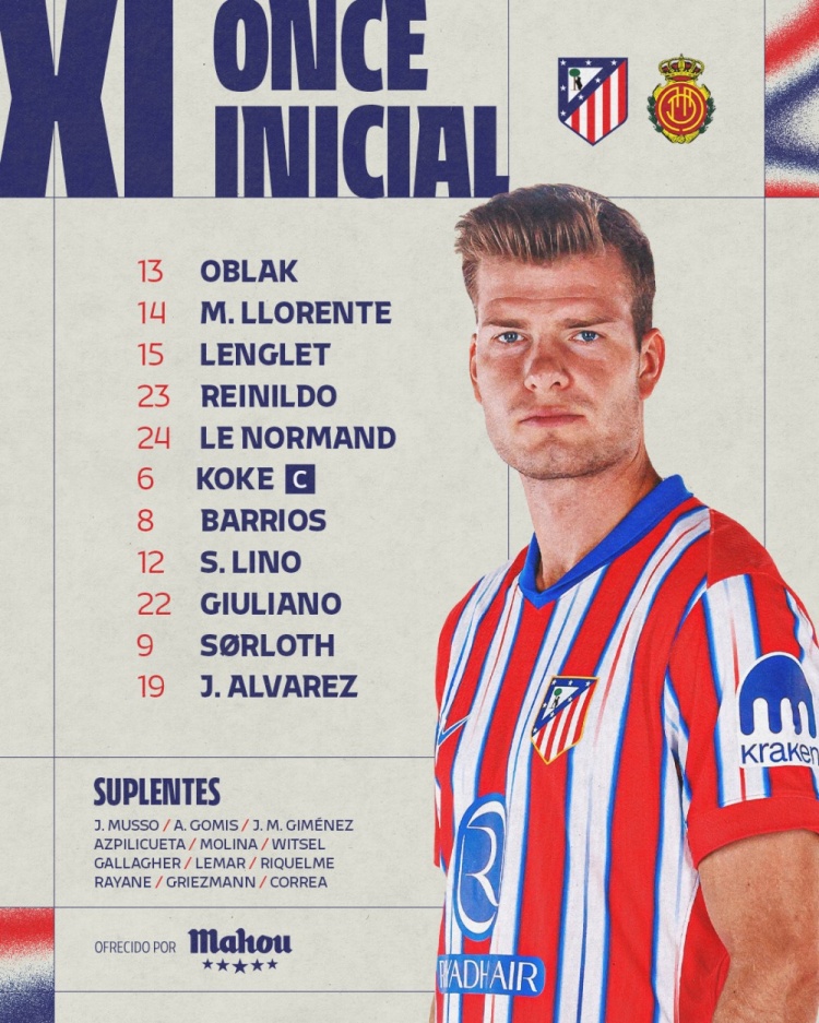 2月2日訊 北京時(shí)間2月2日1:30,西甲第22輪,馬競主場對陣馬洛卡,雙方首發(fā)公布,馬競方面,阿爾瓦雷斯首發(fā),格列茲曼替補(bǔ)。