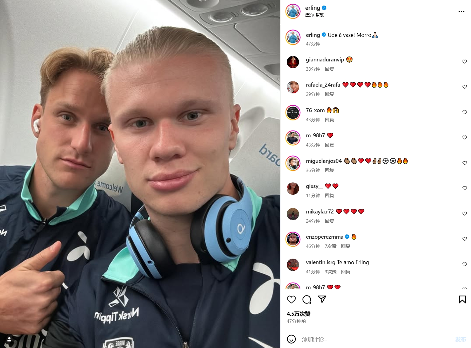 3月23日訊 在北京時(shí)間今天凌晨進(jìn)行的世預(yù)賽中,哈蘭德打進(jìn)1球,幫助挪威客場(chǎng)5-0大勝摩爾多瓦。哈蘭德更新社媒動(dòng)態(tài),曬出與國(guó)家隊(duì)隊(duì)友博特海姆的合照,配文:“出去瞎逛,有趣?!?/p>北京3月26日凌晨,挪威將在世預(yù)賽中客場(chǎng)對(duì)陣以色列。 本文標(biāo)簽: 足球 英超 曼城 哈蘭德