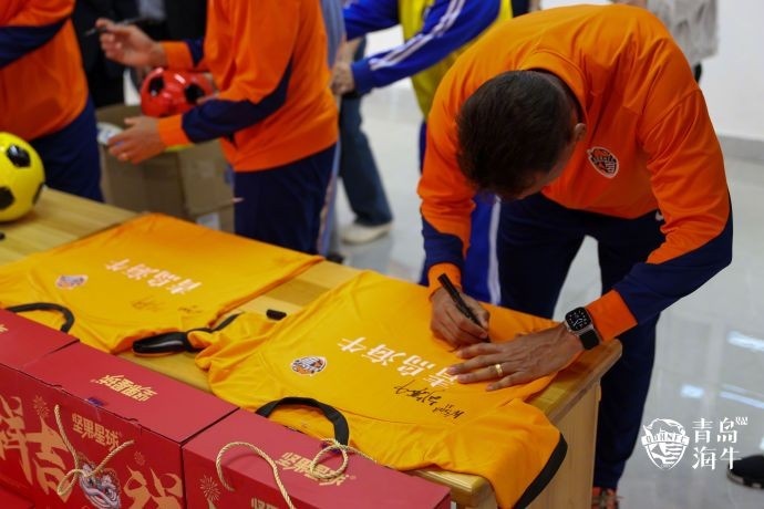 初春的青島充滿暖意,海牛俱樂部球員們的到來更是給孩子們帶來了歡聲笑語。俱樂部為兒童福利院捐贈(zèng)了牛奶、堅(jiān)果、足球及其他生活用品,并為兒童福利院送上簽名足球、球衣、專屬球衣等紀(jì)念禮品。