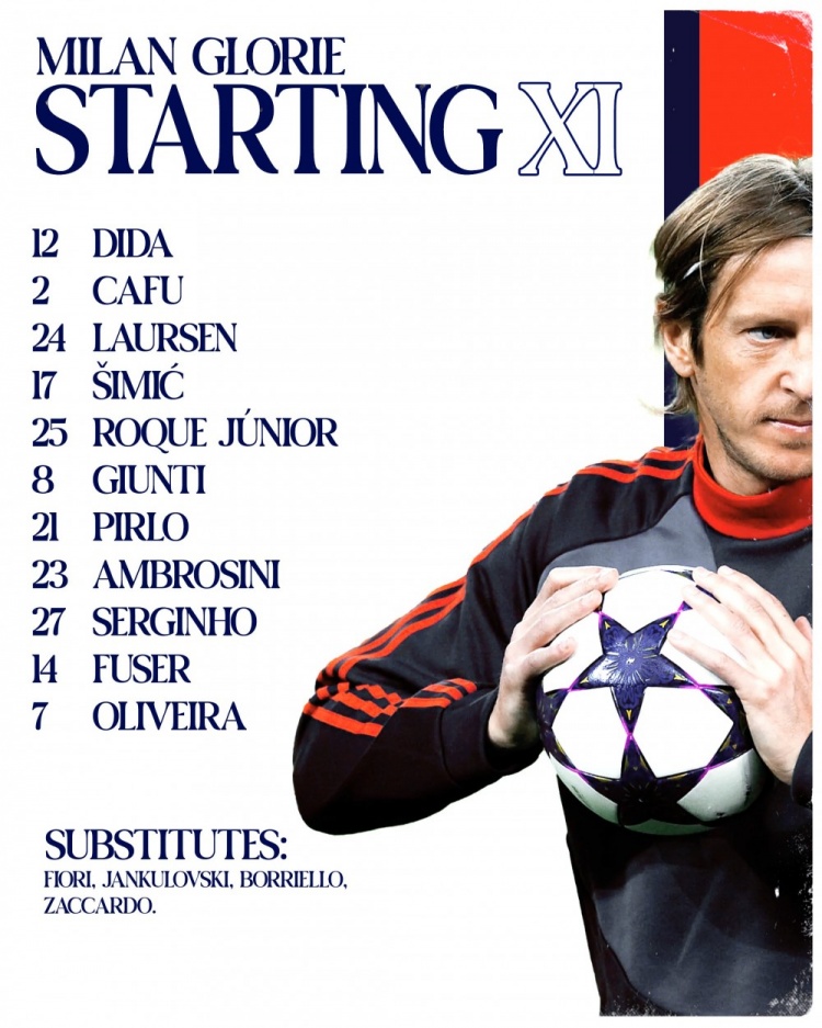 AC米蘭首發(fā):迪達(dá)、卡福、勞爾森、西米奇、羅克-儒尼奧爾、吉恩蒂、皮爾洛、安布羅西尼、塞爾吉尼奧、福塞爾、奧利維拉