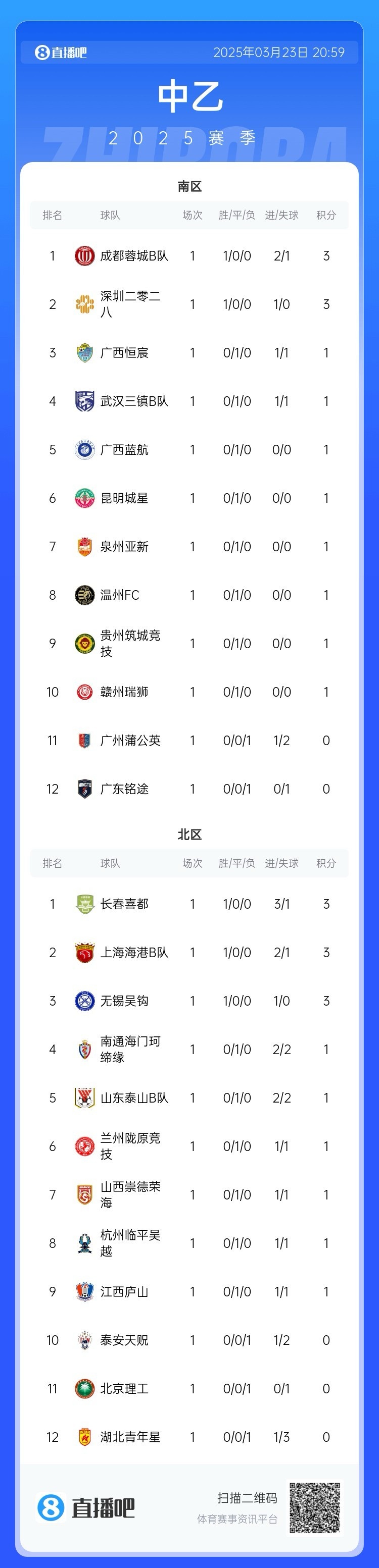 3月23日訊 中乙聯(lián)賽第一輪今天結(jié)束全部爭(zhēng)奪,蓉城B隊(duì)2-1擊敗廣州蒲公英,三鎮(zhèn)B隊(duì)?wèi)?zhàn)平廣西恒宸,無(wú)錫吳鉤、長(zhǎng)春喜都、深圳二零二八收獲開(kāi)門紅。