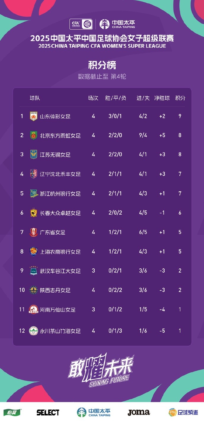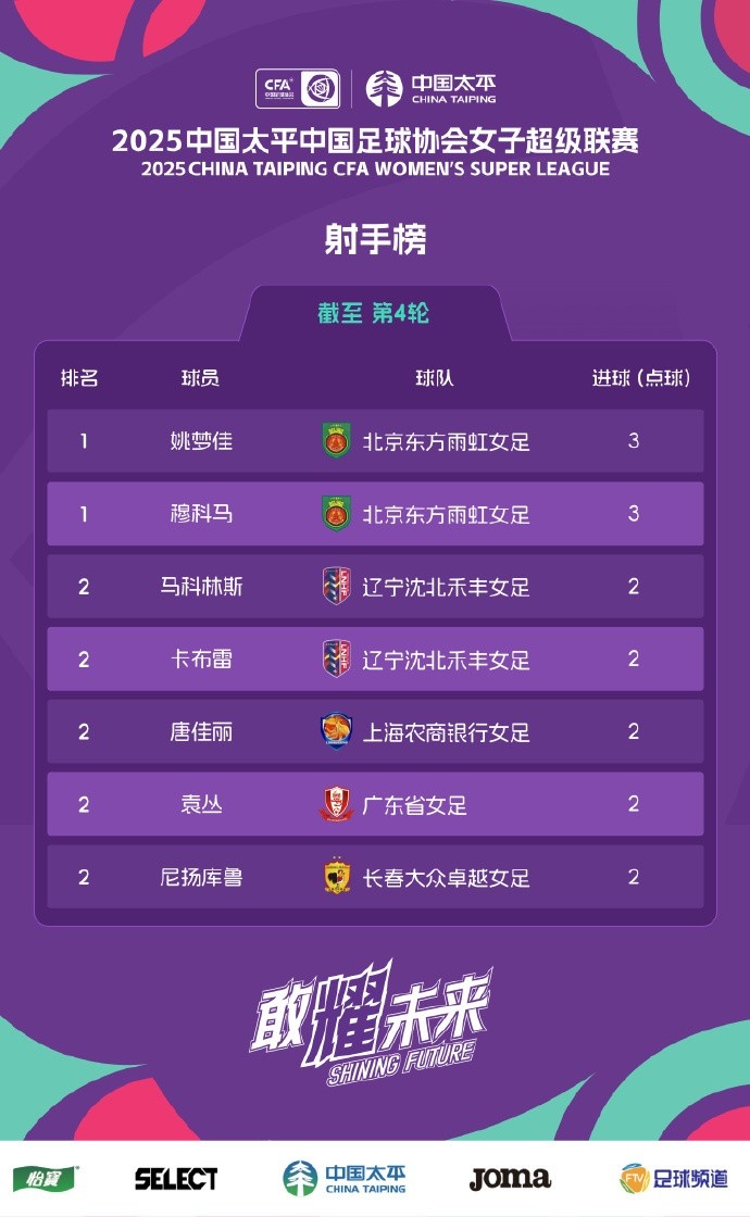 2025中國太平女超聯(lián)賽第4輪射手榜 ?? ???