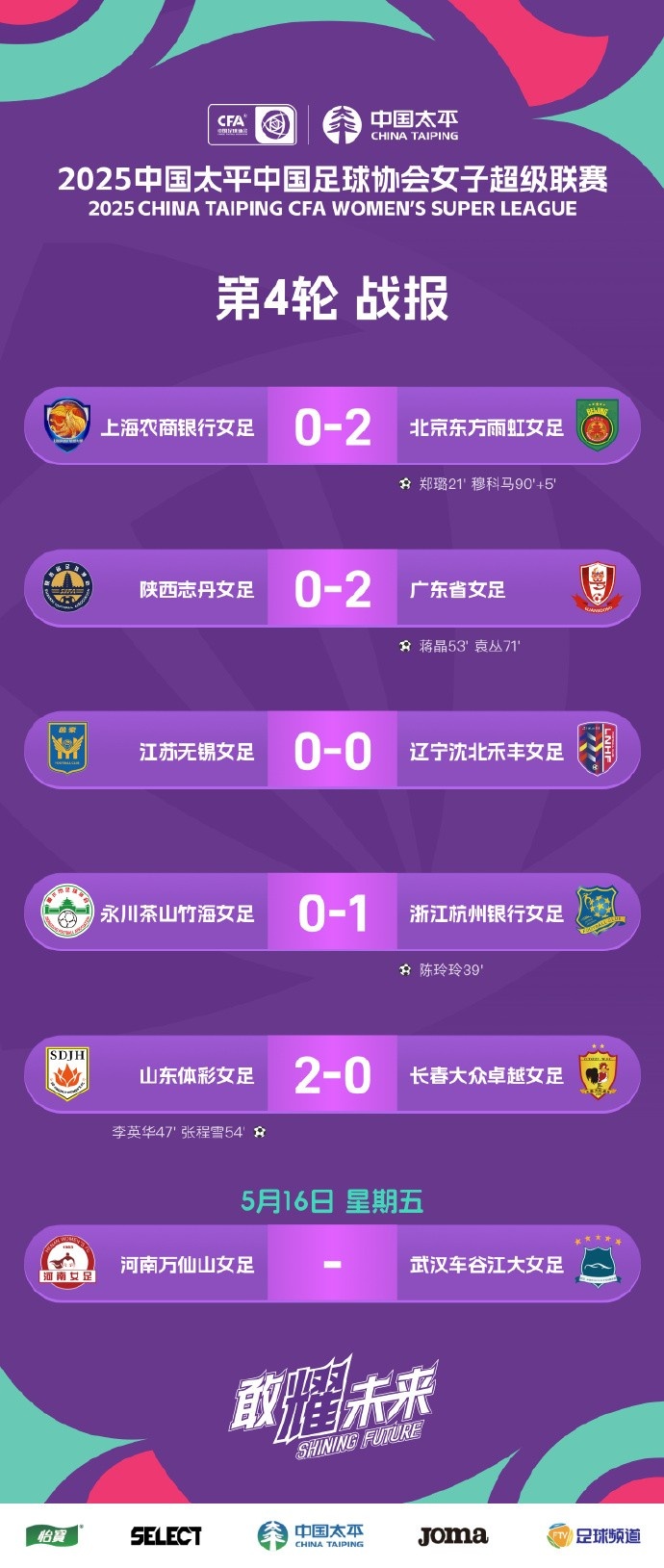 2025中國太平女超聯(lián)賽第4輪戰(zhàn)報 ???