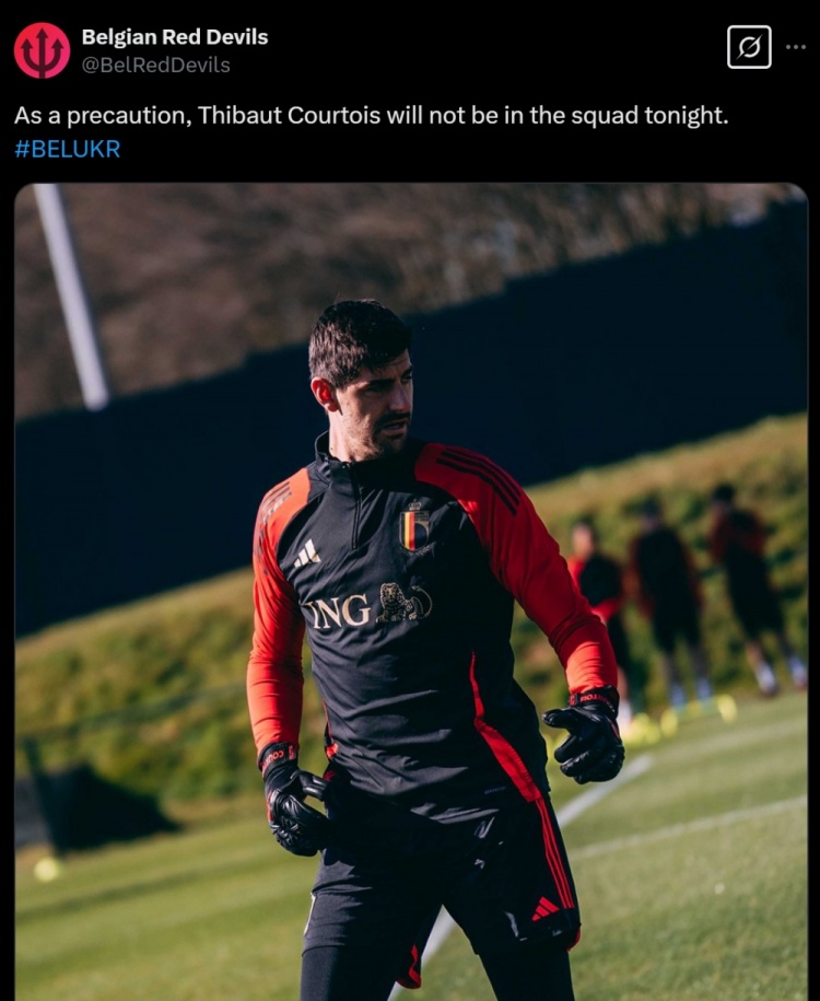 對(duì)此,比利時(shí)國家隊(duì)表示,作為預(yù)防措施,庫爾圖瓦沒有進(jìn)入比賽陣容。