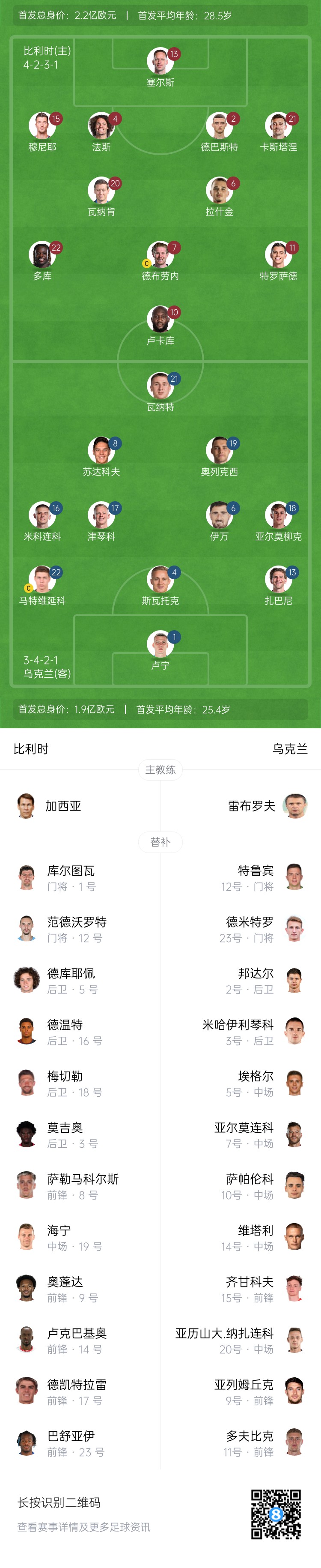 3月24日訊 北京時間03:45,歐國聯(lián)A聯(lián)賽升級賽次回合,比利時主場對陣烏克蘭。首回合比利時客場1-3不敵烏克蘭。賽前官方公布了雙方的首發(fā)名單。