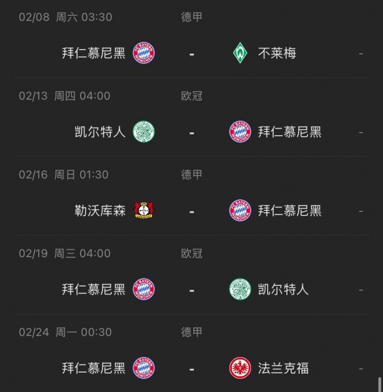 凱恩說道:“(在2月)我們有很多艱難的比賽,包括凱爾特人、勒沃庫森、斯圖加特和法蘭克福。我們必須做好準(zhǔn)備,而且需要全隊(duì)齊心協(xié)力。我們還有很多比賽要踢?!?/p>