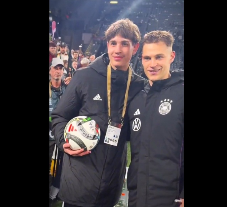 值得一提的是,現(xiàn)場的德國球童第一時間將足球拋給基米希,在很大程度上幫助實現(xiàn)了這一進球。基米希也在賽后找到這位球童,為其送上簽名足球并合影鼓勵。