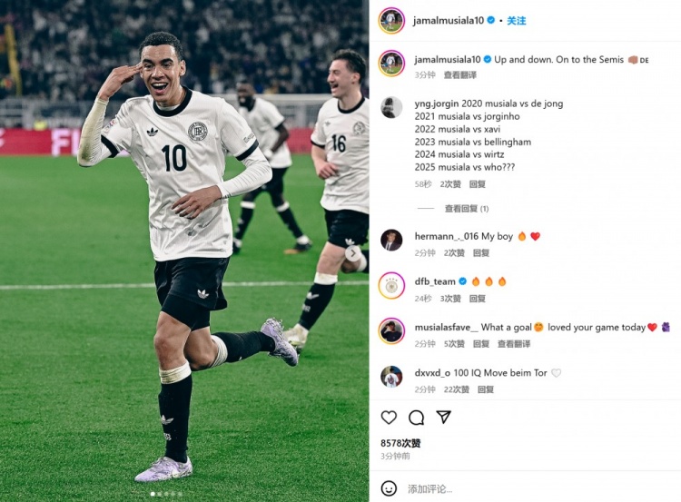 3月24日訊 德國在歐國聯(lián)八強(qiáng)戰(zhàn)次回合3-3戰(zhàn)平意大利,總比分5-4晉級,穆西亞拉取得進(jìn)球。第35分鐘,基米希右路角球突襲快發(fā)到禁區(qū),穆西亞拉門前推射破門。他也在賽后通過社媒曬出自己的慶祝照,并配文:“有起有伏,晉級半決賽!” 本文標(biāo)簽: 足球 德甲 意甲 國家隊 德國 意大利 拜仁慕尼黑