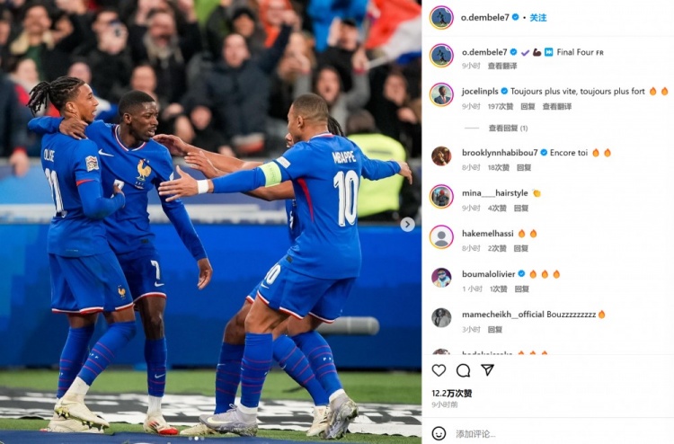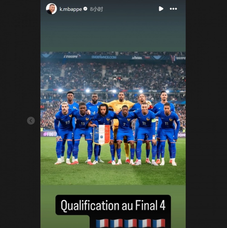 3月24日訊 歐國聯(lián)八強戰(zhàn)次回合已經完賽,法國2-0克羅地亞,點球大戰(zhàn)淘汰對手。重返法國隊的姆巴佩在賽后通過社媒曬出全隊合照,并配文:“晉級四強!”比賽第80分鐘,姆巴佩直塞,奧利塞插上倒三角回敲,登貝萊順勢低射破門。而取得進球的登貝萊也曬出和隊友相擁慶祝的合照并表示:“????????????晉級四強”。 本文標簽: 足球 西甲 皇家馬德里 法甲 巴黎圣日耳曼 國家隊 法國 克羅地亞 姆巴佩