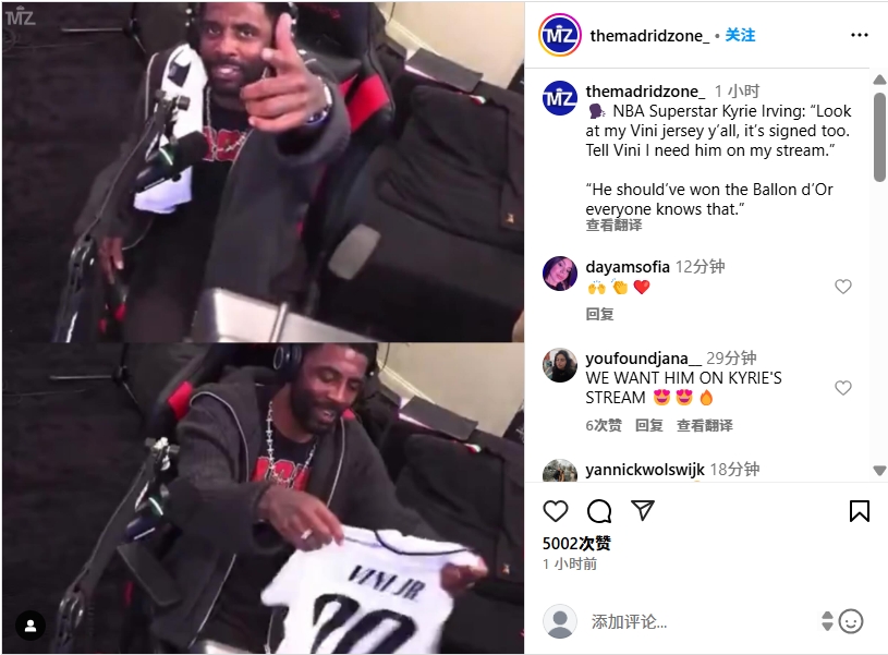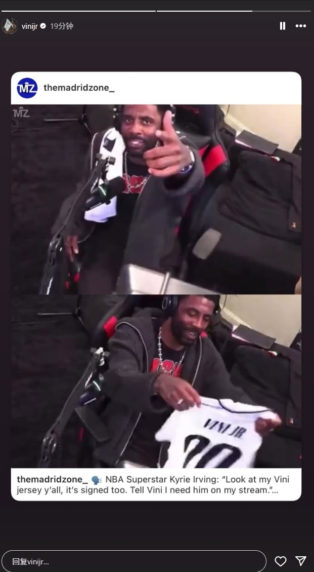 維尼修斯社媒截圖03月24日訊 NBA球星凱里歐文近日開啟直播,期間他為維尼修斯發(fā)聲。歐文曬出了維尼修斯的簽名球衣,表示:“你們看看我的維尼修斯球衣,這是簽了名的。告訴他我需要它出現(xiàn)在直播里。他本該獲得金球獎,每個人都清楚?!?/p>維尼修斯轉(zhuǎn)載原帖截圖 本文標(biāo)簽: 足球 西甲 皇家馬德里