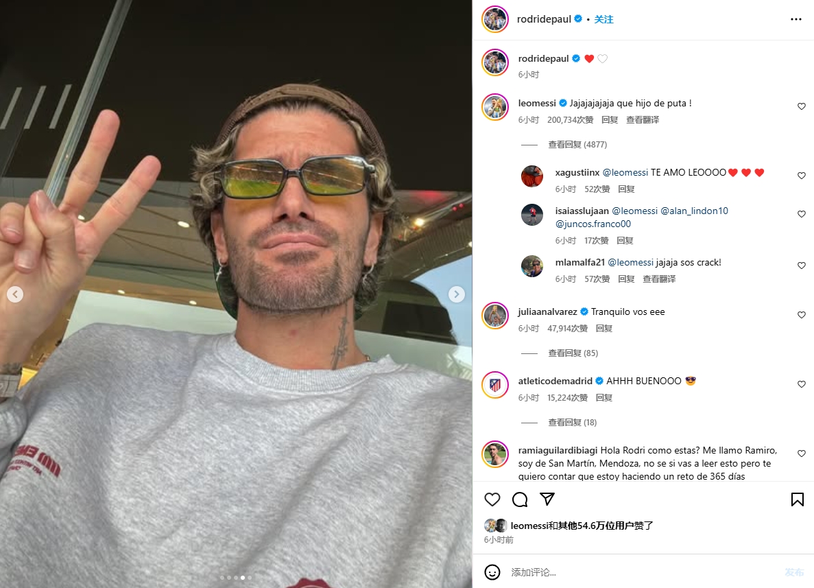 02月02日訊 德保羅今日在ins曬出個人帥照,照片中他在大都會球場身穿寬松運動衫和褲子,戴著墨鏡和帽子。而這位阿根廷國家隊的潮人代表再次遭到了隊友調(diào)侃。梅西在評論區(qū)評論道:“哈哈哈哈,你這狗娘養(yǎng)的?!?/p>阿爾瓦雷斯也給德保羅評論道:“你冷靜點。”小西蒙尼也出現(xiàn)在評論區(qū),他寫道:“哎喲,不愧是帥哥啊,媽呀呀呀????????” 本文標簽: 足球 西甲 馬德里競技 梅西 邁阿密國際