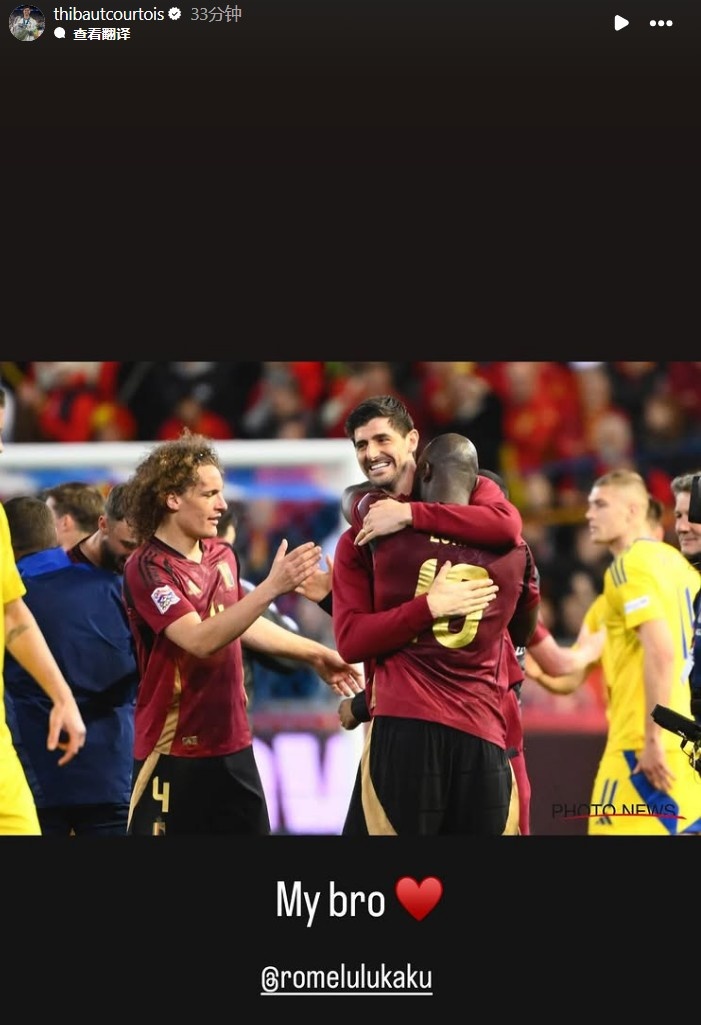 3月24日訊 今天凌晨,比利時在歐國聯(lián)3-0戰(zhàn)勝烏克蘭,庫爾圖瓦賽后曬出自己與盧卡庫擁抱的照片。本場比賽,盧卡庫貢獻(xiàn)了梅開二度,賽后庫爾圖瓦曬照并寫道:“我的兄弟??@盧卡庫” 本文標(biāo)簽: 足球 國家隊(duì) 比利時