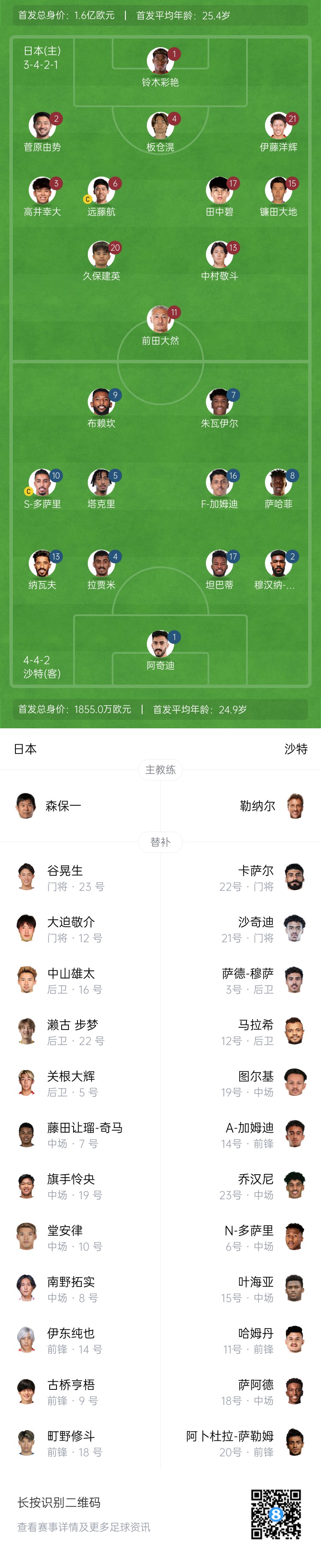 03月25日訊 北京時間18點35分,世預賽亞洲區(qū)第三階段C組第8輪,日本vs沙特,賽前雙方首發(fā)公布!日本已經(jīng)提前鎖定2025年世界杯席位,本場比賽他們對首發(fā)進行了輪換。