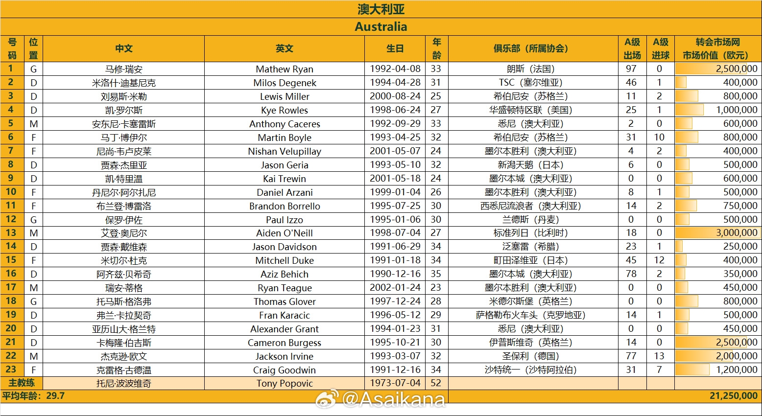03月25日訊 今晚世預(yù)賽中國隊坐鎮(zhèn)主場對陣澳大利亞,賽前兩隊23人大名單公布。平均年齡:中國28.1歲,澳大利亞29.7歲總身價:中國1145萬歐元,澳大利亞2125萬歐元。 本文標(biāo)簽: 足球 中超 中國足球 國家隊 中國男足