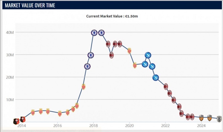 巴卡約科成名于摩納哥,在2017年與姆巴佩一起奪得了法甲冠軍,隨后以4000萬歐加盟切爾西,一共出場43次,打進3球助攻3次。