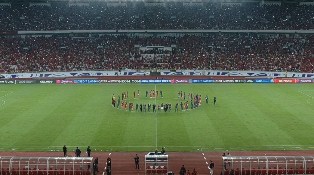 積9分掌握晉級(jí)附加賽主動(dòng)權(quán)!賽后印尼全隊(duì)圍繞中圈面向球迷謝場(chǎng)