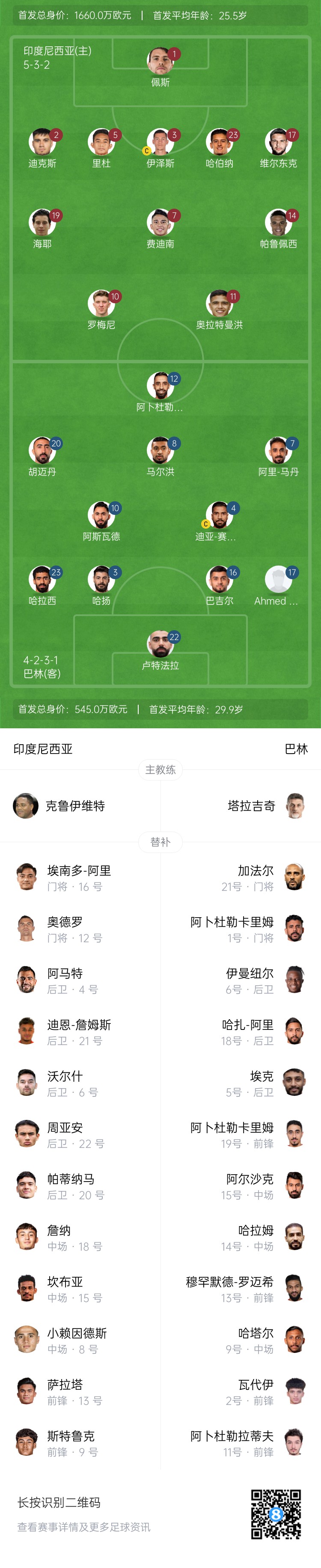 03月25日訊 北京時(shí)間今晚21:45,世預(yù)賽亞洲區(qū)第三階段C組第8輪,印尼vs巴林,賽前雙方首發(fā)公布!