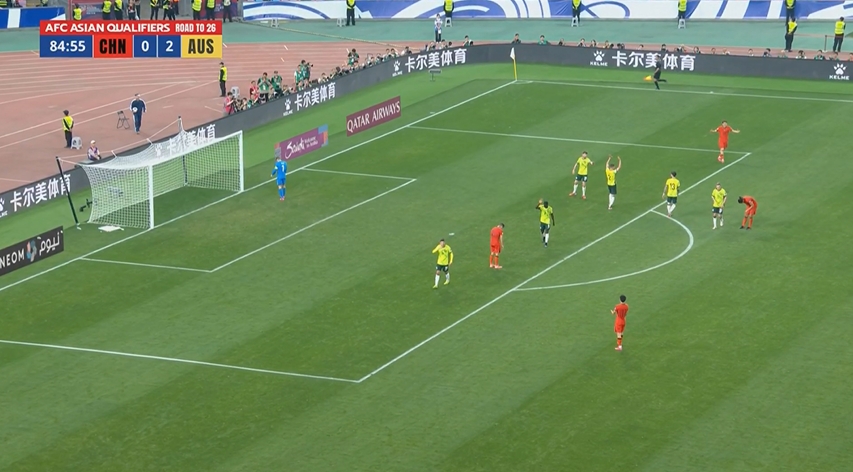 3月25日訊 國足vs澳大利亞第85分鐘,張玉寧強行選擇遠射打高,拜合拉木攤手,張玉寧也因為這次射門抽筋被換下。