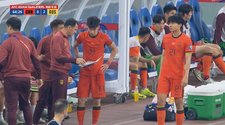比賽第65分鐘,國(guó)足做出換人調(diào)整,王鈺棟、汪海健登場(chǎng),換下謝文能、黃政宇。