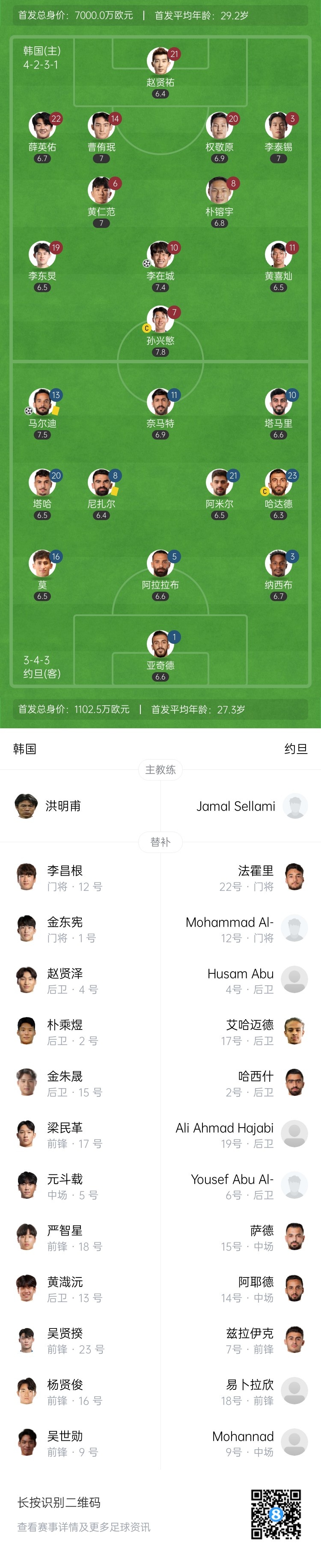 3月25日訊 18強(qiáng)賽B組第8輪,韓國(guó)坐鎮(zhèn)主場(chǎng)首爾世界杯體育場(chǎng)迎戰(zhàn)約旦。上半場(chǎng),孫興慜角球助攻李在城閃擊破門,馬爾迪扳平。半場(chǎng)戰(zhàn)罷,韓國(guó)1-1約旦。