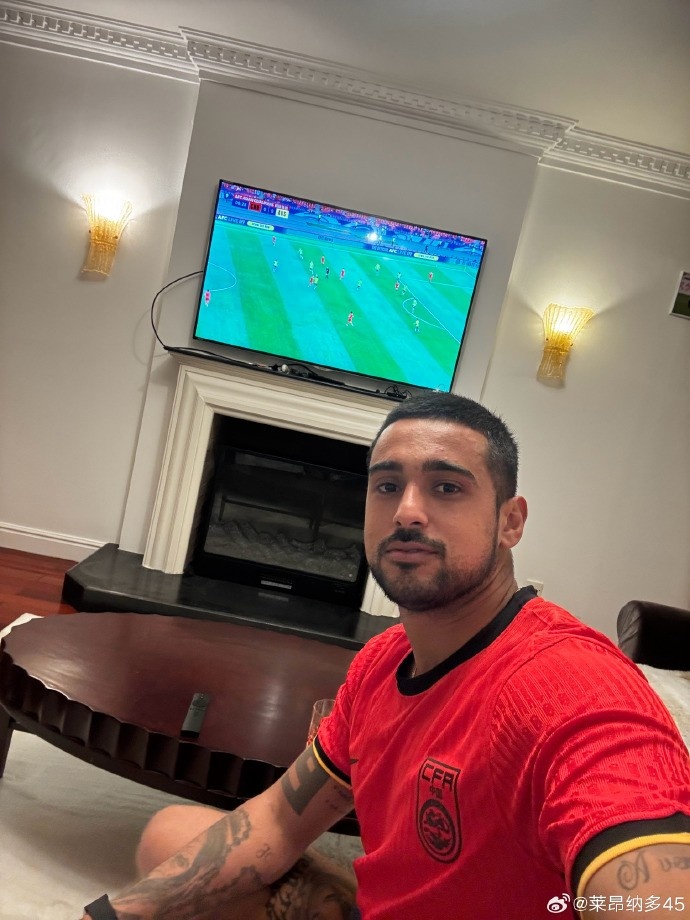 海港外援萊昂納多身穿國足球衣,在社媒打拼音為國足助威:Jiāyóu ??????