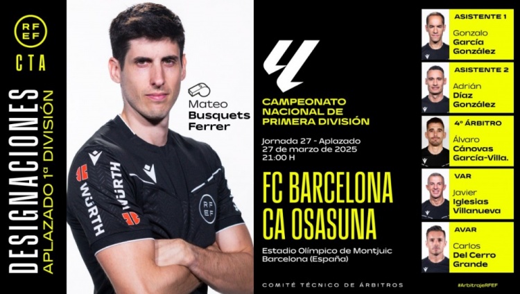 3月25日訊 北京時(shí)間3月28日凌晨4:00,2024-25賽季西甲第27輪補(bǔ)賽,巴塞羅那將迎戰(zhàn)奧薩蘇納。賽前,西班牙足協(xié)官方公布了本場(chǎng)比賽裁判組,費(fèi)雷爾執(zhí)法。主裁判:費(fèi)雷爾助理裁判:加西亞-岡薩雷斯、迪亞斯-岡薩雷斯第四官員:加西亞-比利亞VAR裁判:維拉諾瓦VAR裁判助理:格蘭德 本文標(biāo)簽: 足球 西甲 巴塞羅那 奧薩蘇納