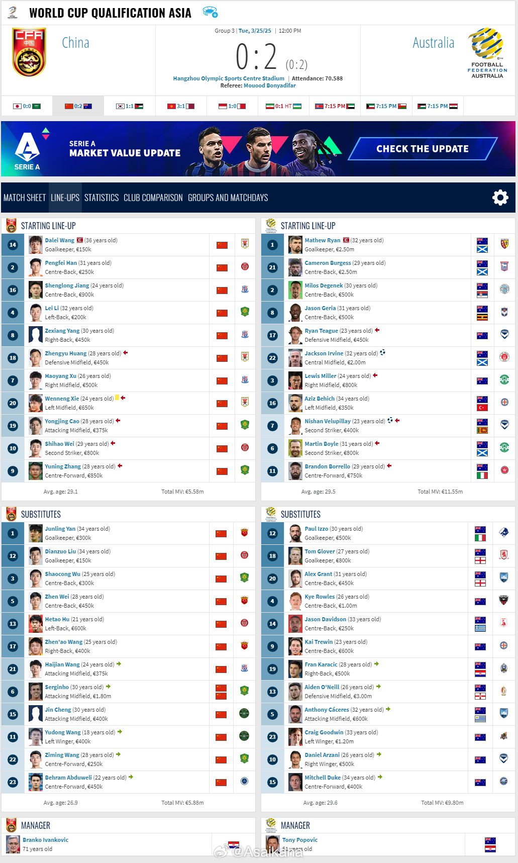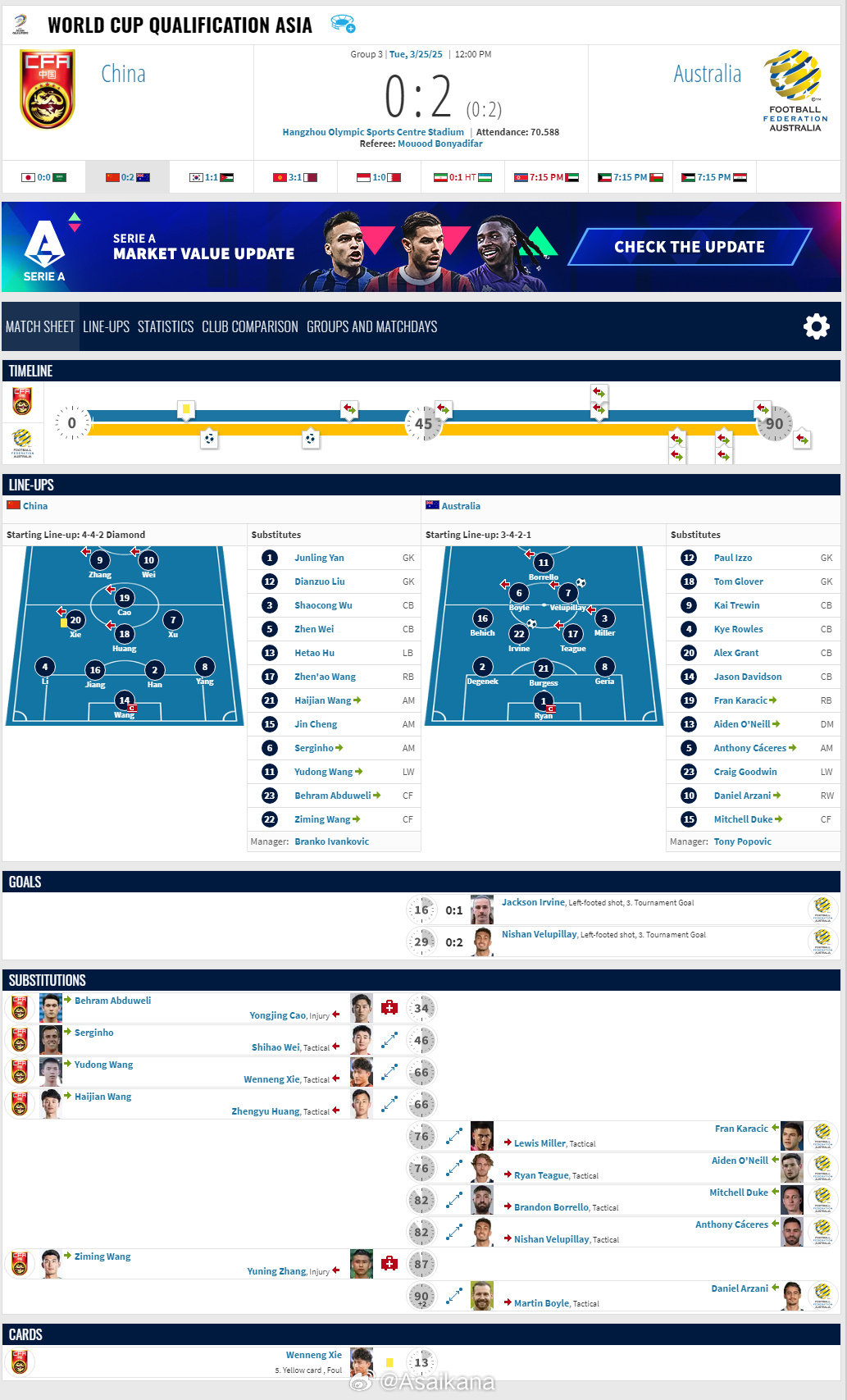 2026年美加墨世界杯亞洲區(qū)預(yù)選賽,中國(guó)0-2澳大利亞比賽報(bào)告 ???。
