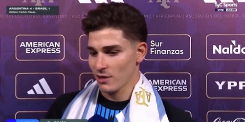 03月26日訊 南美世預(yù)賽第14輪,阿根廷4-1巴西。賽后阿爾瓦雷斯接受了TYC采訪。