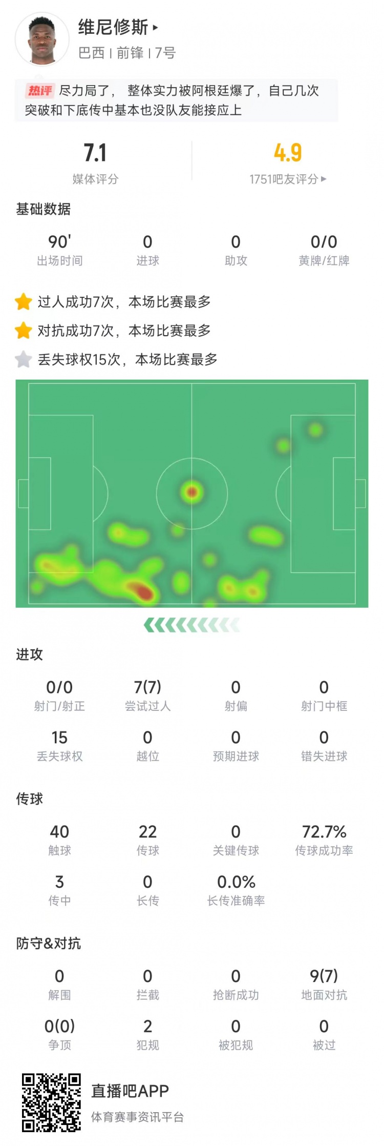 3月26日訊 南美世預(yù)賽第14輪比賽,維尼修斯為巴西踢滿全場,最終巴西客場1-4不敵阿根廷。維尼修斯本場比賽數(shù)據(jù):出場時間——90分鐘射門——0嘗試過人——7(成功7)丟失球權(quán)——15觸球——40傳球——22傳球成功率——72.7%傳中——3地面對抗——9(成功7)犯規(guī)——2媒體評分——7.1 本文標簽: 足球 皇家馬德里 西甲 巴西