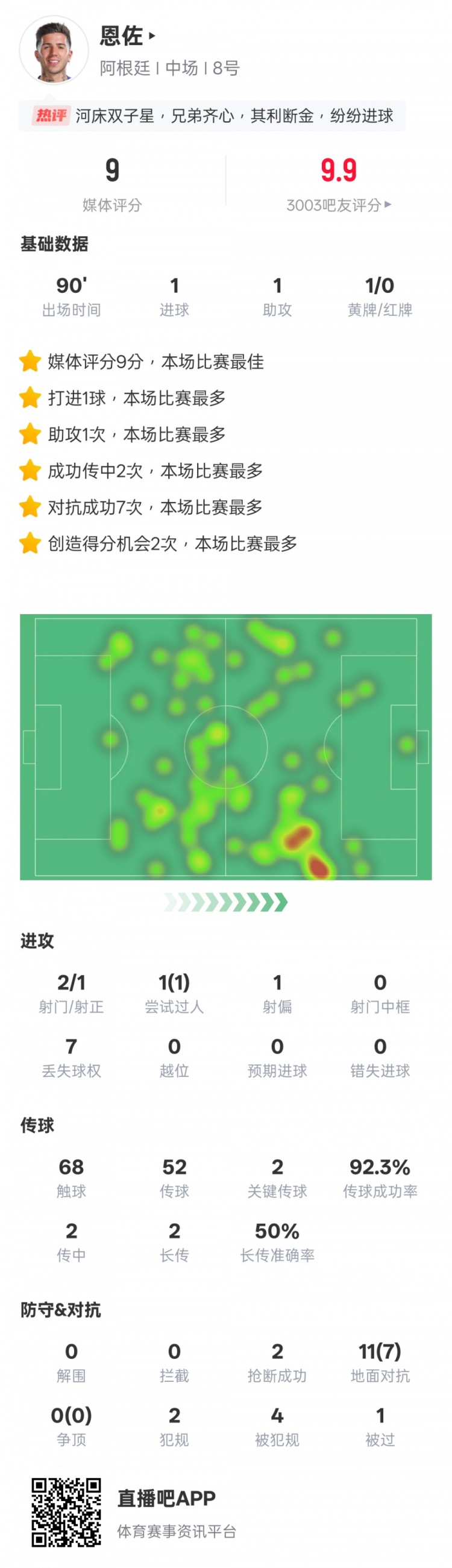 3月26日訊 世預(yù)賽南美區(qū)第14輪,阿根廷4-1巴西,恩佐首發(fā)出戰(zhàn),傳射建功,還有2次關(guān)鍵傳球,評分9.0全場最高。