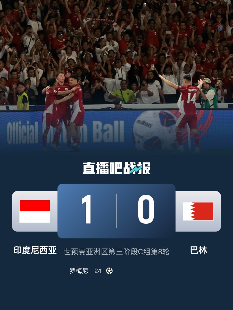 3月26日訊 18強(qiáng)賽C組第8輪,印尼隊主場1-0擊敗巴林隊,以9個積分暫居C組第4,繼續(xù)追趕身前的沙特和澳大利亞。