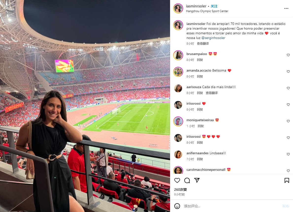 3月26日訊 國足主場與澳大利亞的比賽結束后,塞爾吉尼奧的妻子更新社媒,曬出了自己在現(xiàn)場觀賽的感受。本場比賽,塞爾吉尼奧在下半場替補出場,上演了他在國足的首秀。賽后,他的妻子在社媒曬照并配文寫道:嚇壞了!7萬名球迷聚集在體育場為我們的球員加油!我很榮幸能見證這些時刻,為我生命中的愛而歡呼,你(塞爾吉尼奧)是我們的光! 本文標簽: 足球 中超 中國足球 中國男足 北京國安