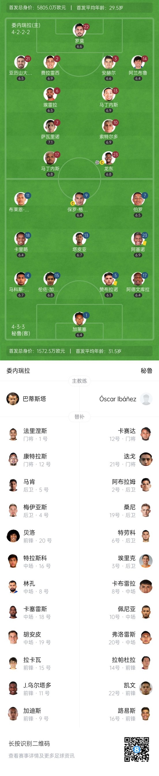 第9分鐘,委內(nèi)瑞拉左路定位球開到禁區(qū)馬丁內(nèi)斯頭球頂高了。↓