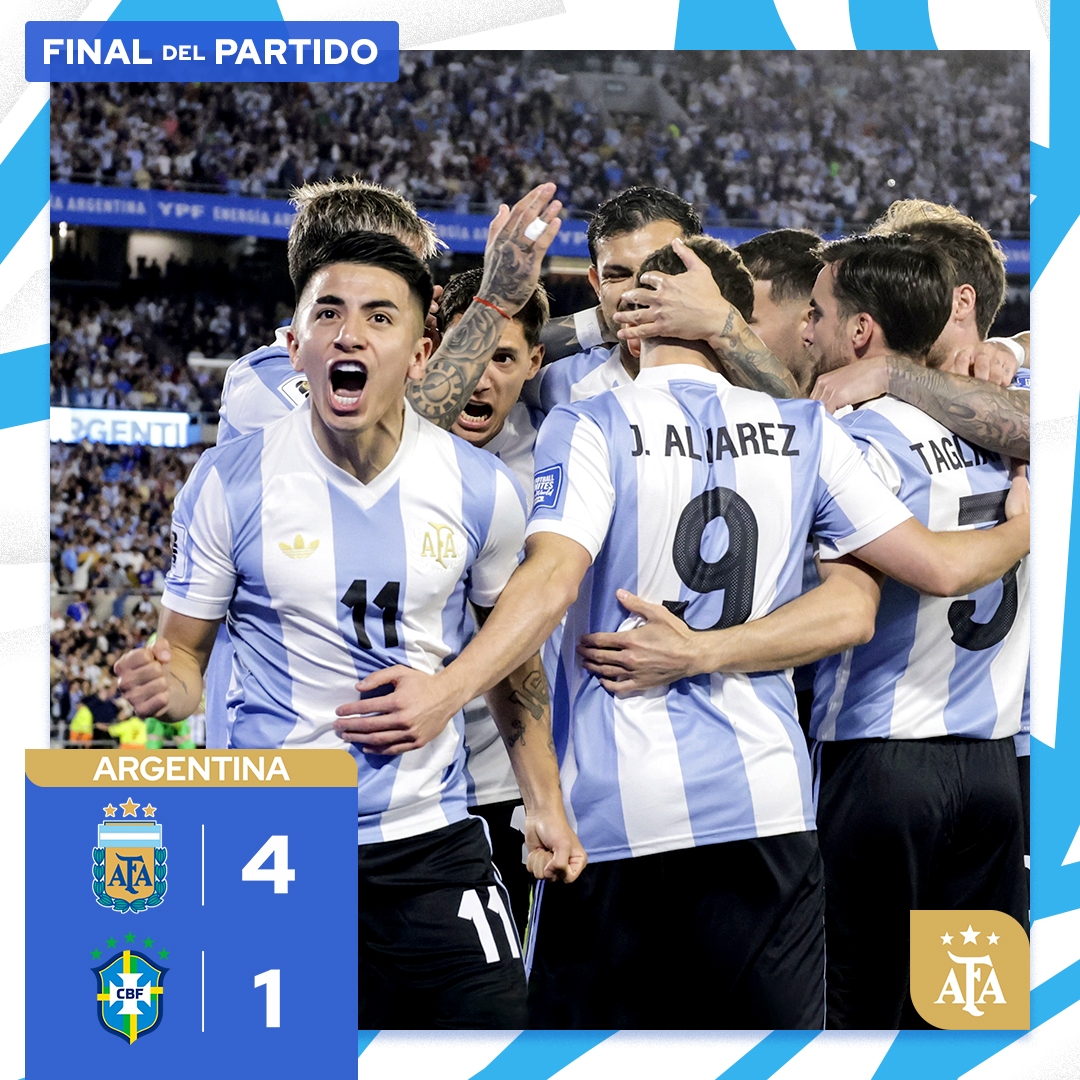 03月26日訊 南美世預(yù)賽第14輪,阿根廷4-1擊敗巴西。為阿根廷破門的4人分別是阿爾瓦雷斯、恩佐、麥卡利斯特和朱利亞諾-西蒙尼。