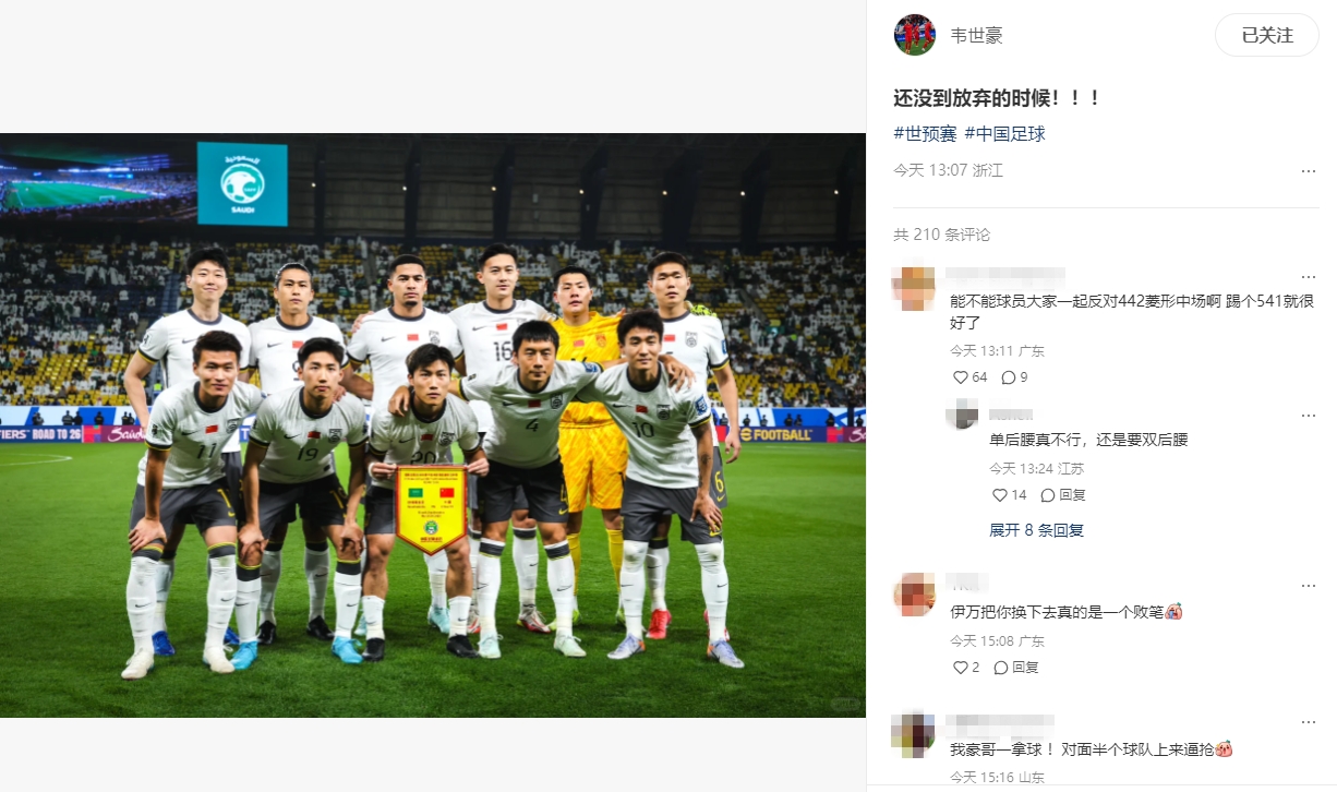 今日韋世豪更新個(gè)人社媒寫道:還沒到放棄的時(shí)候?。?!