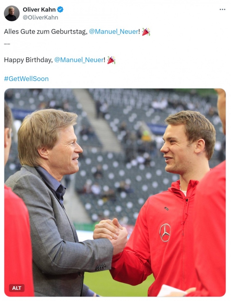 3月27日訊 今天是諾伊爾的39歲生日,拜仁傳奇門將卡恩社媒為他送上祝福。卡恩社媒曬出與諾伊爾的合照,配文:“生日快樂(lè),諾伊爾!”諾伊爾2011年效力拜仁至今,為球隊(duì)出戰(zhàn)554場(chǎng)比賽,丟掉453球,完成262場(chǎng)零封,幫助拜仁贏得28座冠軍獎(jiǎng)杯,其中包括11座德甲獎(jiǎng)杯和2座歐冠獎(jiǎng)杯。 本文標(biāo)簽: 足球 德甲 拜仁慕尼黑