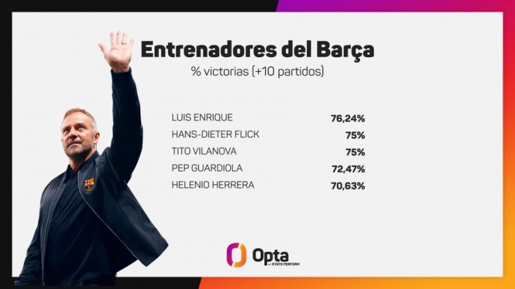 3月28日訊 巴薩在本輪西甲補賽3-0輕取奧薩蘇納,延續(xù)了弗里克帶隊的出色戰(zhàn)績。數(shù)據(jù)統(tǒng)計顯示,弗里克在巴薩各項賽事44場取得33勝,75%勝率追平比拉諾瓦。在隊史執(zhí)教超過10場的教練中,勝率僅次于恩里克(76.24%)。瓜迪奧拉勝率72.47%位列第四,埃倫尼奧-埃雷拉以70.63%勝率位列第五。 本文標(biāo)簽: 足球 西甲 巴塞羅那 奧薩蘇納