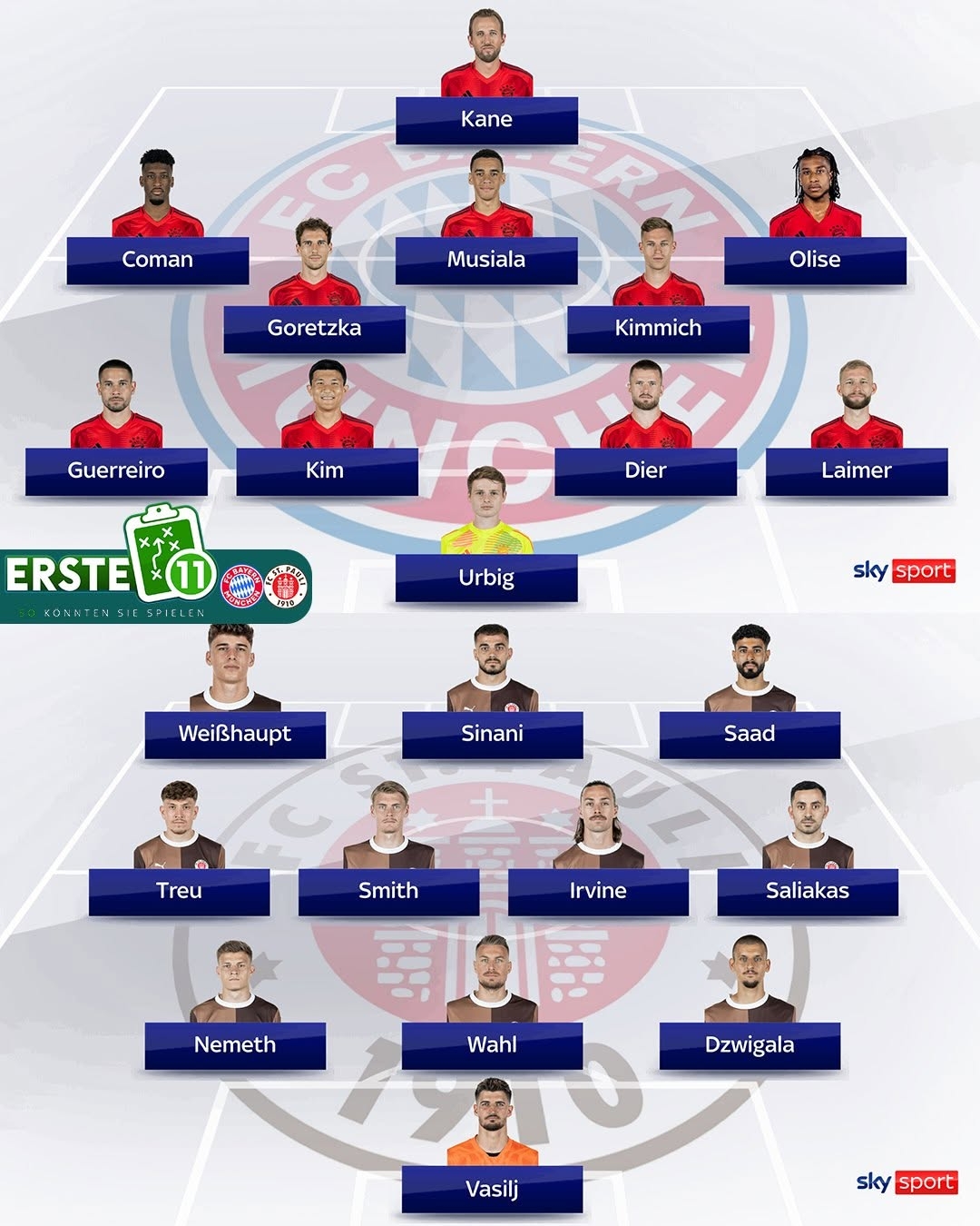 3月28日訊 北京時間3月29日22:30,德甲第27輪,拜仁主場對陣圣保利,天空體育對此役雙方首發(fā)進(jìn)行了預(yù)測。