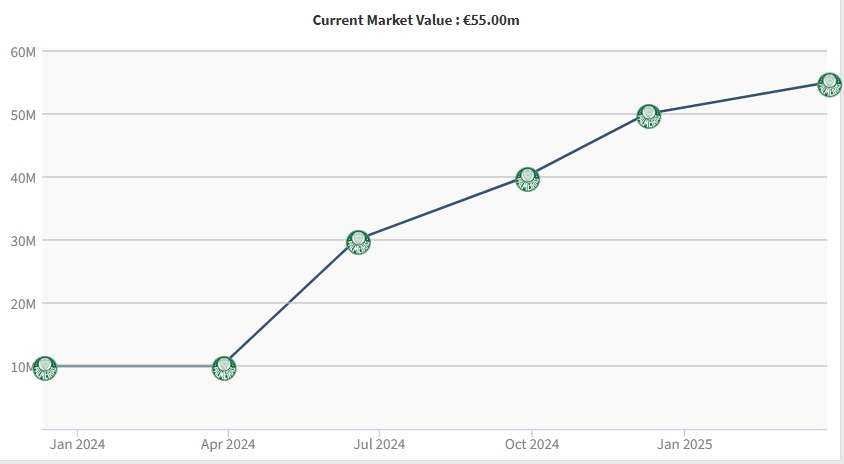 03月28日訊 德轉(zhuǎn)今日更新了巴甲的球員身價(jià),即將在下賽季加盟切爾西的17歲小將埃斯特旺身價(jià)上漲500萬歐,來到5500萬歐。埃斯特旺現(xiàn)年17歲,司職右邊鋒。進(jìn)入新賽季,他為帕爾梅拉斯出戰(zhàn)13場(chǎng)比賽打進(jìn)5球。 本文標(biāo)簽: 足球 英超 切爾西