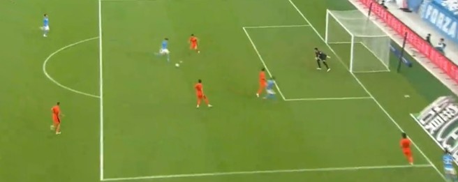 第25分鐘,列昂索前場接直塞球過掉馬鎮(zhèn)后推射被門線解圍?!?/p>