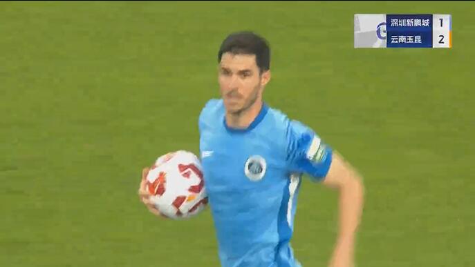 03月28日訊 中超第3輪,深圳新鵬城vs云南玉昆,比賽第32分鐘,埃杜-加西亞搶點破門,深圳新鵬城扳回一球1-2落后云南玉昆。