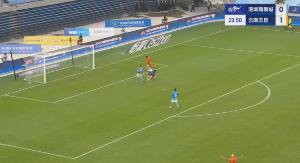 03月28日訊 中超第3輪,深圳新鵬城vs云南玉昆,比賽第24分鐘,約尼查搶斷后過頂挑傳,奧斯卡單刀破門,玉昆2-0領先新鵬城。