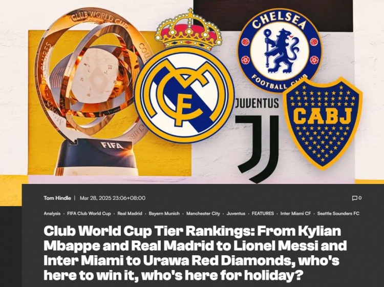 3月29日訊 新世俱杯將于今年夏天在美國舉行,“進球網(wǎng)”為已經(jīng)確定的31隊進行了“分班”。